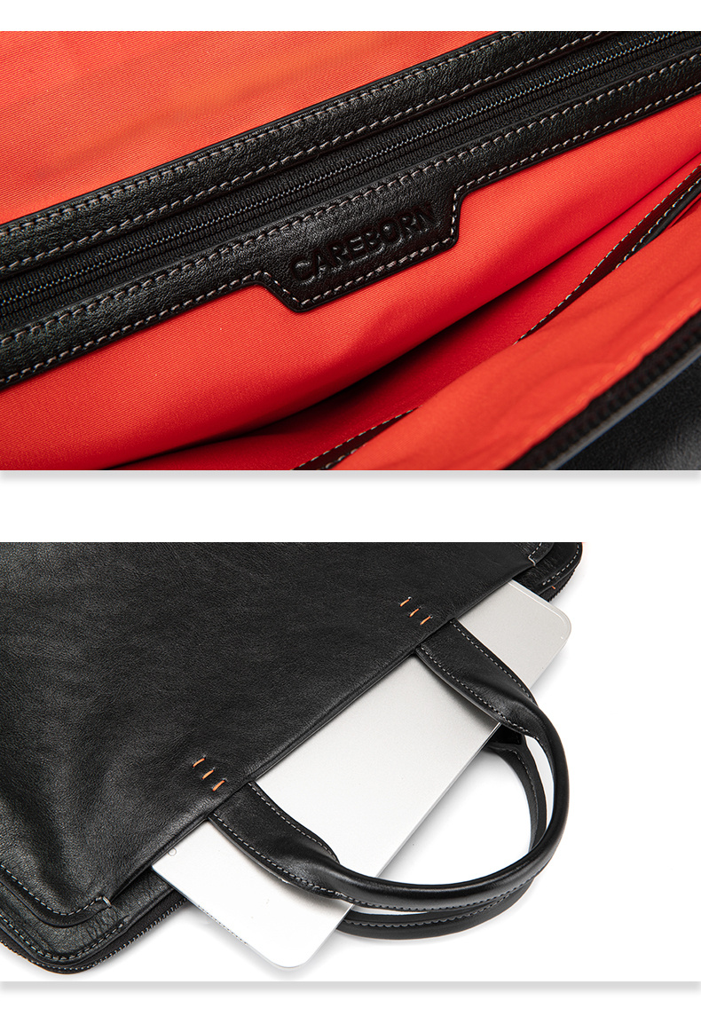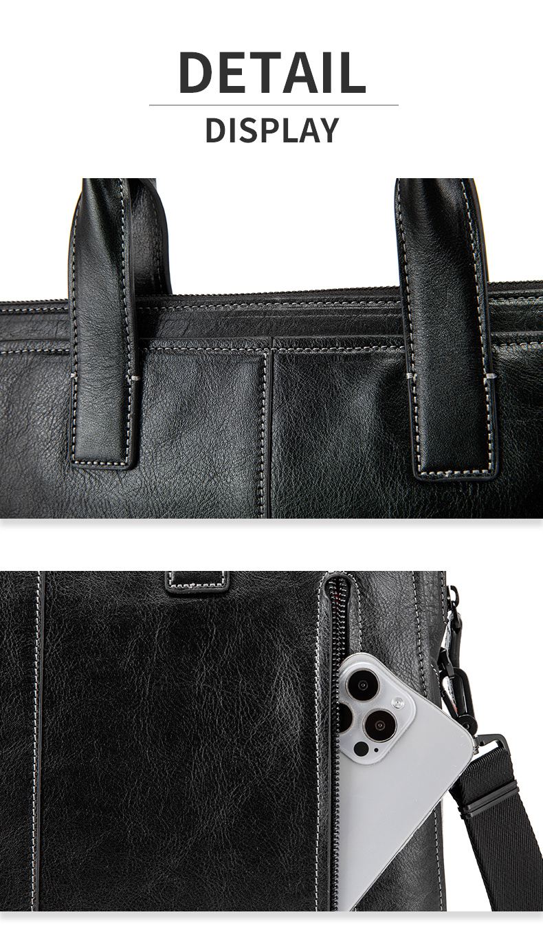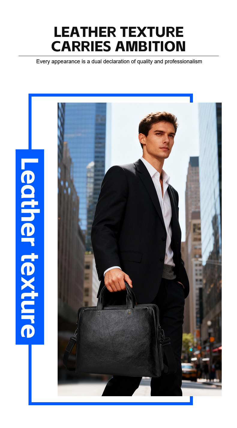 This briefcase exudes understated confidence in the workplace. The supple, supple leather boasts a sophisticated matte finish, understated yet undeniably eye-catching. Its clean, minimalist lines, free of unnecessary embellishments, effortlessly project a professional aura, perfect for business meetings or daily commutes. The dual handles and adjustable shoulder strap allow you to carry it hands-free or shoulder-carry it as you please. The internal compartments easily accommodate your laptop, documents, and personal items, combining practicality and style for a confident and polished look on every journey.