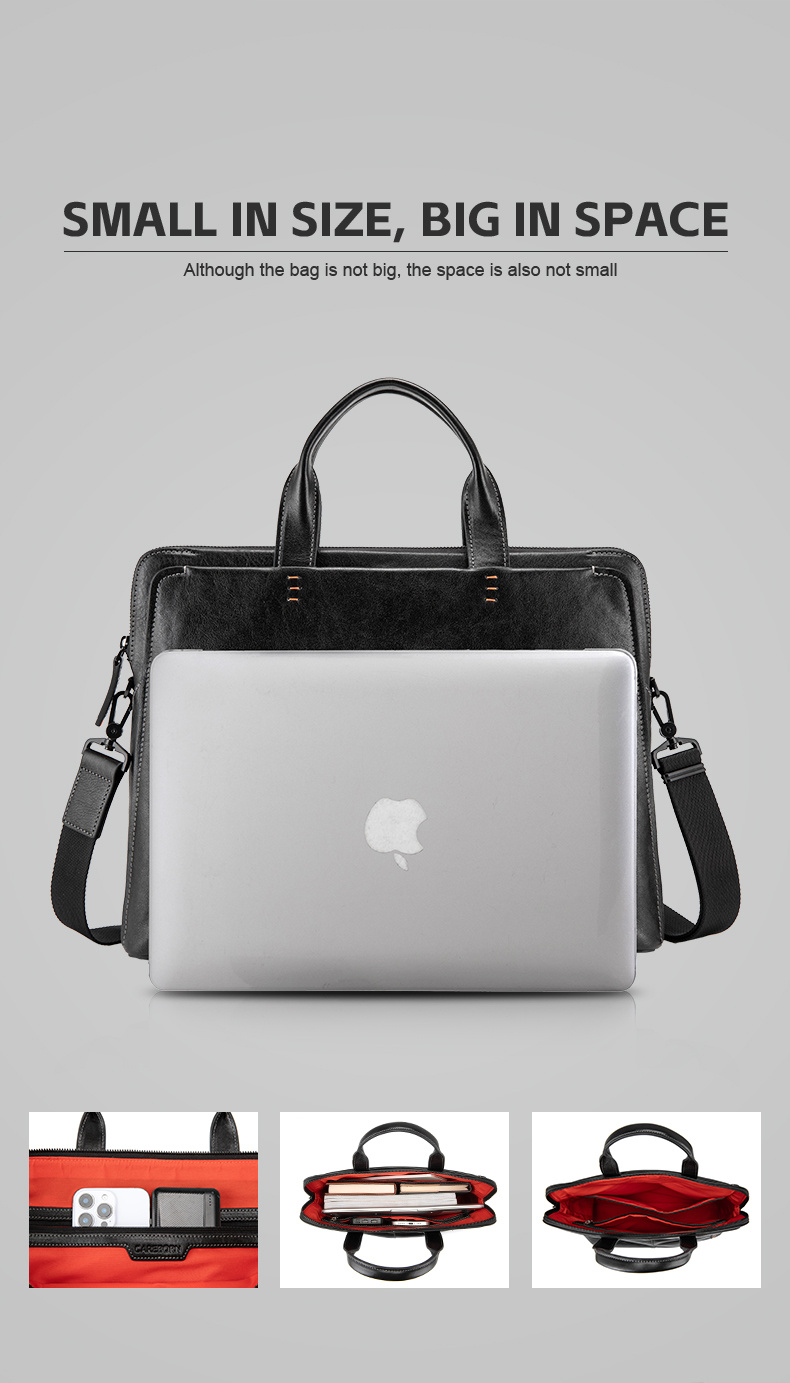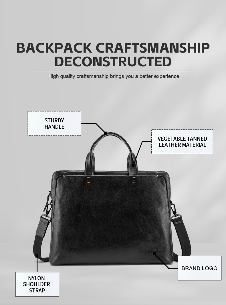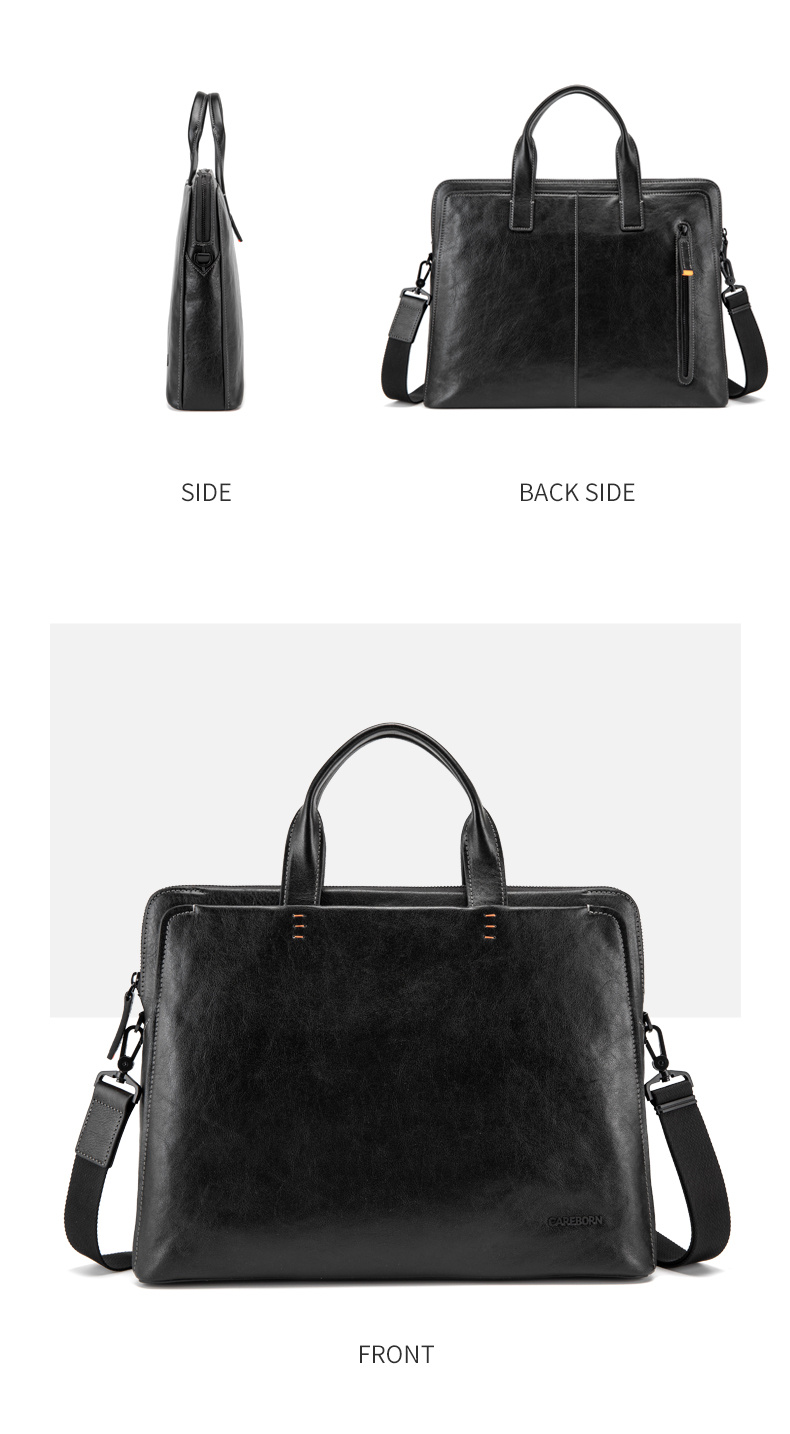 This briefcase exudes understated confidence in the workplace. The supple, supple leather boasts a sophisticated matte finish, understated yet undeniably eye-catching. Its clean, minimalist lines, free of unnecessary embellishments, effortlessly project a professional aura, perfect for business meetings or daily commutes. The dual handles and adjustable shoulder strap allow you to carry it hands-free or shoulder-carry it as you please. The internal compartments easily accommodate your laptop, documents, and personal items, combining practicality and style for a confident and polished look on every journey.