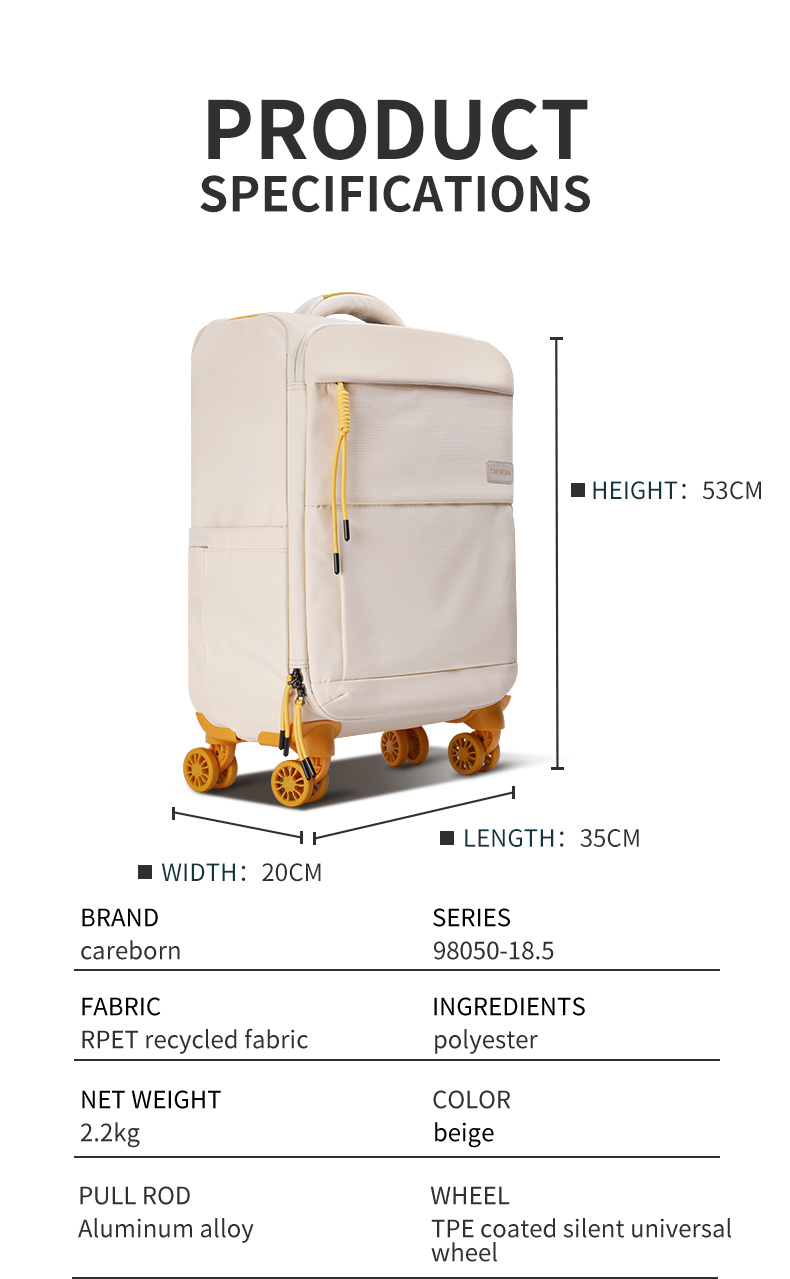 Weighing only 2.2KG, this soft fabric suitcase is more suitable for women’s travel.